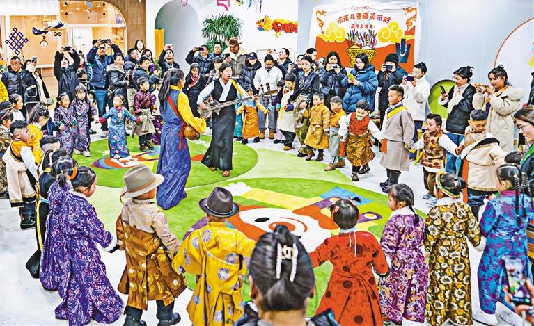2月3日,一場(chǎng)別開生面的“兒童藏裝派對(duì)”在拉薩市一家兒童書店舉行,老師在派對(duì)上向孩子們講解春節(jié)和藏歷新年的傳統(tǒng)習(xí)俗,現(xiàn)場(chǎng)還有扎念琴表演、做手工、吃“古突”、手偶講故事等內(nèi)容,豐富了孩子們的寒假生活,迎接即將到來的新春佳節(jié)。