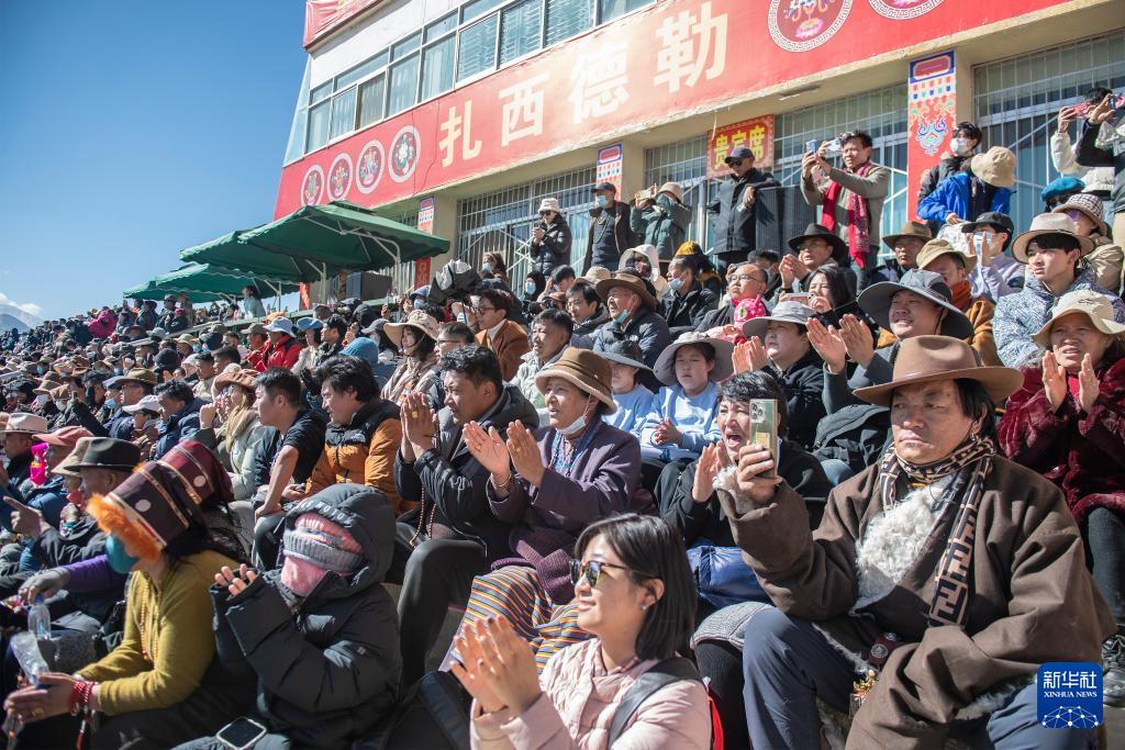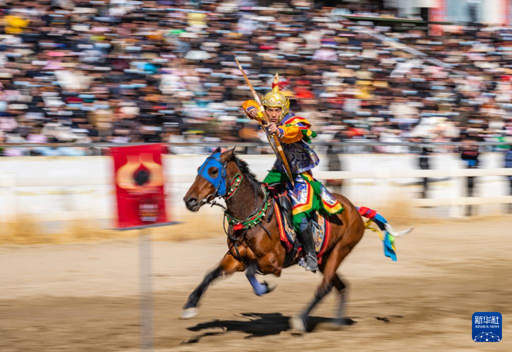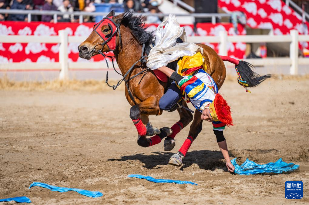 馬術在西藏是吉祥、勇敢和智慧的象征。騎手們英姿颯爽,用騎馬拾哈達、騎馬射箭等精彩表演為觀眾送上新年的祝福。