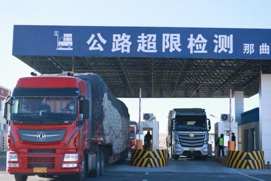 貨車正在通過那拉高速公路那曲超限檢測站。(西藏自治區(qū)交通運輸廳供圖)