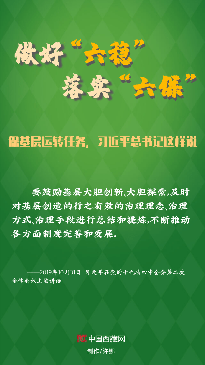 “?;鶎舆\(yùn)轉(zhuǎn)”是推進(jìn)“六穩(wěn)”工作、實(shí)現(xiàn)“六?!蹦繕?biāo)的前提保障。?;鶎舆\(yùn)轉(zhuǎn)事關(guān)全局,近年來(lái),以習(xí)近平同志為核心的黨中央出臺(tái)了一系列基層治理的新舉措,確保基層經(jīng)受考驗(yàn)、有效運(yùn)轉(zhuǎn),奮力實(shí)現(xiàn)各項(xiàng)預(yù)期任務(wù)。