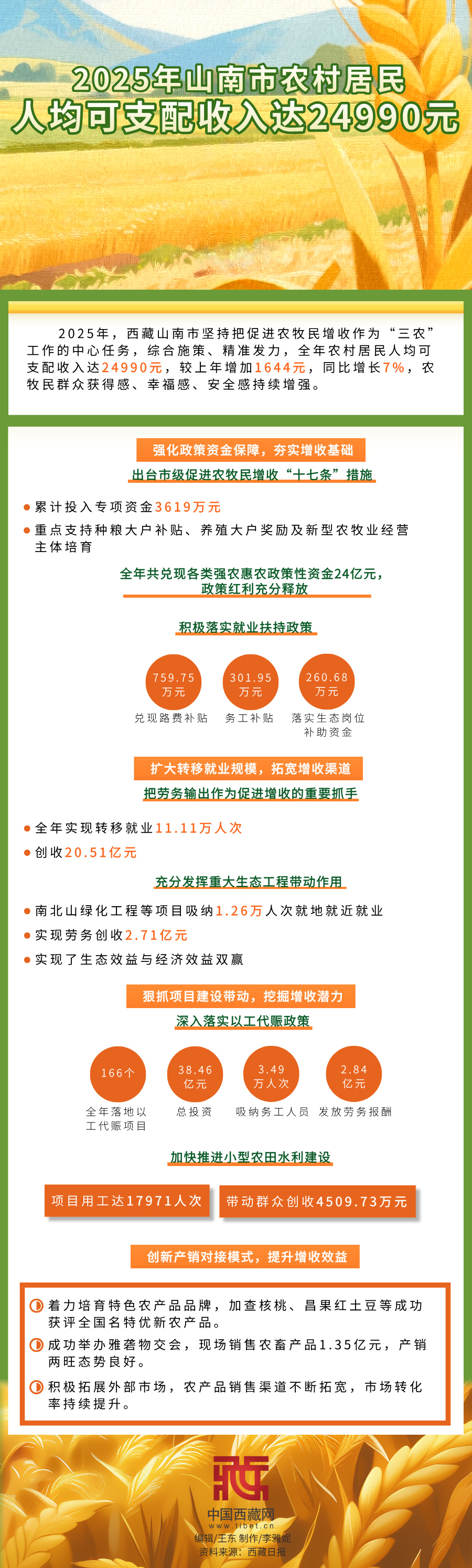 海報(bào)|2025年山南市農(nóng)村居民人均可支配收入達(dá)24990元