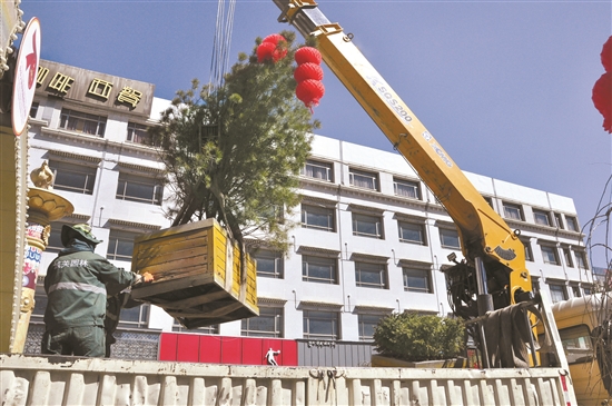 日前,西藏拉薩市城關區(qū)潔達園林公司組織工作人員對宇拓路上可移動的景觀花箱進行吊裝移除,為下一步更換新的綠化植物做準備。