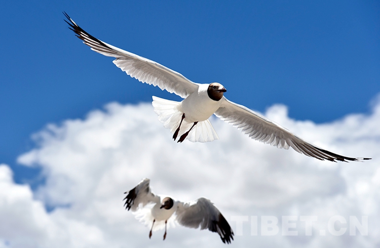 圖為棕頭鷗在班公湖岸滑翔 攝影:王媛媛