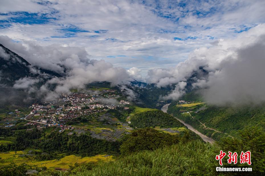 圖為云霧繚繞的墨脫縣城。 何蓬磊 攝