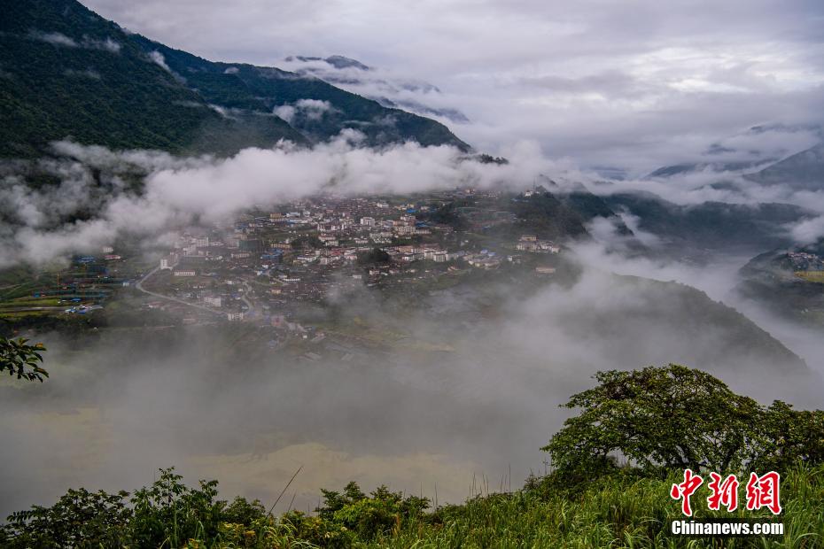 走進(jìn)墨脫,總會(huì)遇見繚繞的云霧,墨脫縣城就隱逸在這縹緲的云霧中,宛若仙境一般。圖為云霧繚繞的墨脫縣城。 何蓬磊 攝