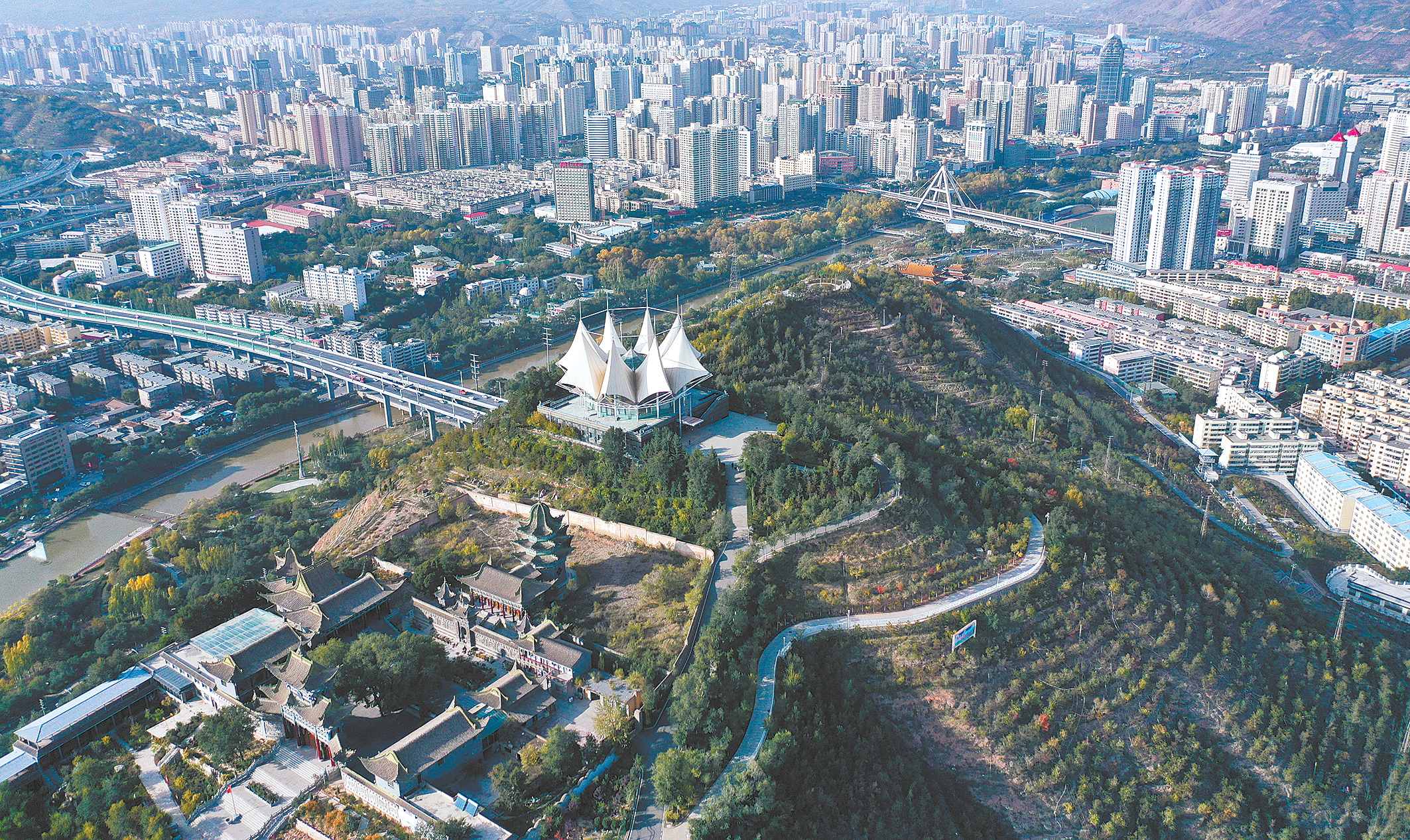 10月12日拍攝的西寧市南山公園(無(wú)人機(jī)照片)。