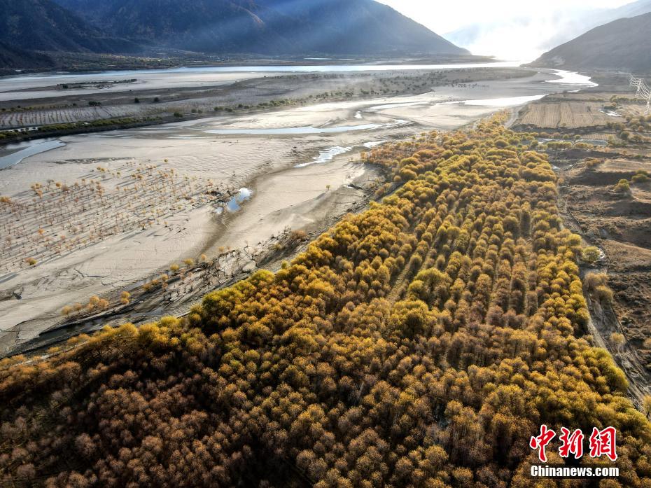 雅魯藏布江位于西藏自治區(qū)境內(nèi),是世界海拔最高的大河之一。近日,記者途徑雅魯藏布江看到,深秋時節(jié),兩岸的柳樹林變得金黃一片,峽谷間秋色宜人,美如畫卷。值得一提的是,在秋冬兩季的日落時分,傳說中“十人九不遇”的南迦巴瓦峰變得相對容易看到“日落金山”的景象,十分壯觀。江飛波 攝
