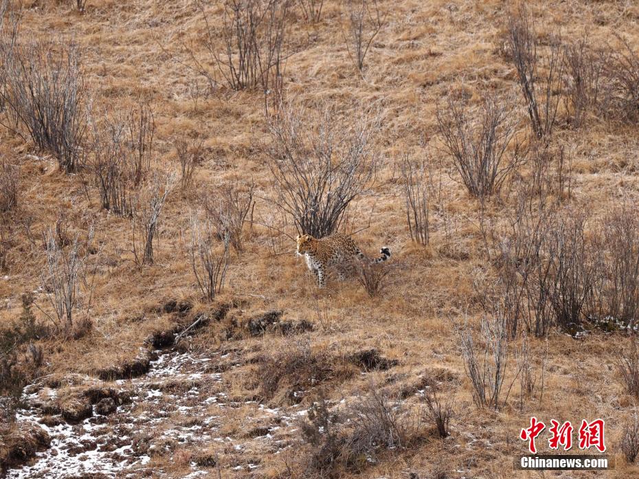 近日,在三江源國家公園瀾滄江源園區(qū)昂賽保護分區(qū)內(nèi),當(dāng)?shù)匾晃荒撩窈蜕鷳B(tài)體驗者,分別拍攝到珍貴的金錢豹畫面。三江源國家公園是中國首個國家公園體制試點,包括長江源(可可西里)、黃河源、瀾滄江源三個園區(qū)在內(nèi)的“一園三區(qū)”,是青藏高原生態(tài)系統(tǒng)的典型代表,分布雪豹、金錢豹、藏羚羊、黑頸鶴等珍稀物種,被稱“高原野生動物王國”“高寒生物種質(zhì)資源庫”。圖為女性牧民仁青央忠拍攝的金錢豹。 仁青央忠 攝