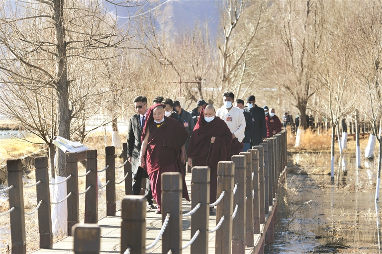 1月10日下午,出席政協(xié)第十一屆拉薩市委員會(huì)第六次會(huì)議的黨外政協(xié)委員到拉魯濕地自然保護(hù)區(qū)參觀考察。