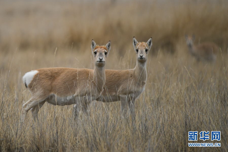 在青海湖特護區(qū)內(nèi)活動的普氏原羚。新華網(wǎng) 潘彬彬 攝