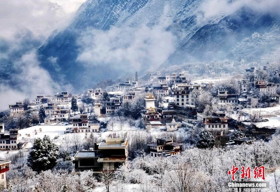 圖為雪后的丹巴甲居藏寨。 降初澤郎 攝
