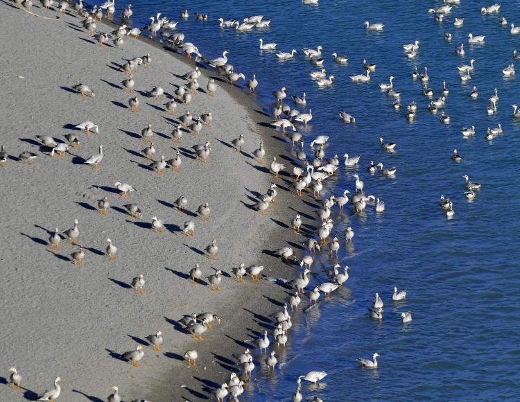 冬日,群山環(huán)抱中的西藏雅尼國家濕地公園候鳥翔集,景色別致。公園橫跨西藏林芝市巴宜區(qū)和米林縣,雅魯藏布江和尼洋河在這里交匯,水面平均海拔2920米。[詳細(xì)] -
