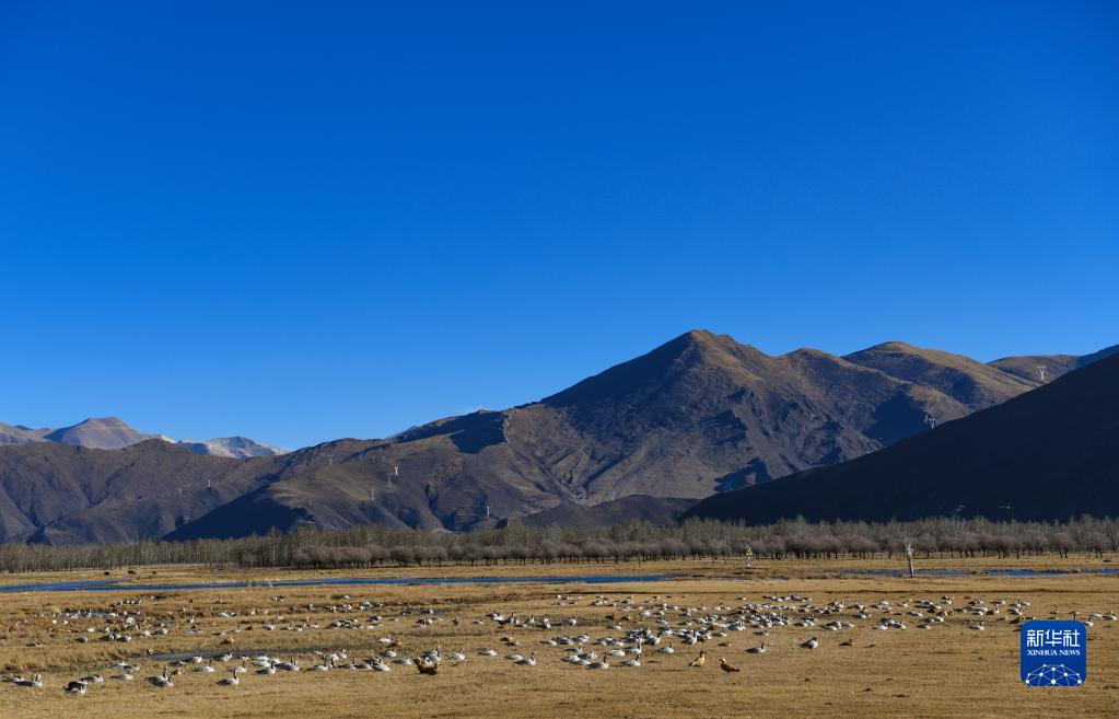 唐嘎鄉(xiāng)位于拉薩市達(dá)孜區(qū)東北部,這里每年冬季都會迎來黑頸鶴、斑頭雁、赤麻鴨等候鳥。這些在此越冬的“客人”和周邊的田園、濕地共同構(gòu)成高原冬季美景。