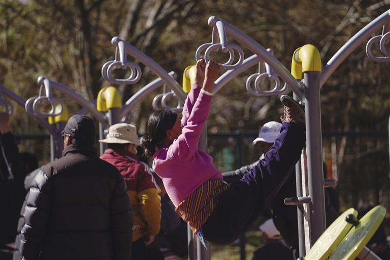 漫步公園,到處都是人們晨練的身影。太極、柔力球、廣場(chǎng)舞,清晨的宗角祿康公園十分熱鬧。在公園一角,還有人在跳鍋莊舞,他們隨著音樂(lè),一會(huì)兒扭胯、一會(huì)兒踢腿、一會(huì)兒擺手……個(gè)個(gè)精神飽滿(mǎn)。