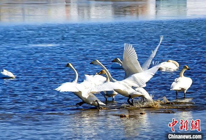 圖為察爾汗鹽湖濕地的大天鵝?!「駹柲臼形麄鞑?供圖