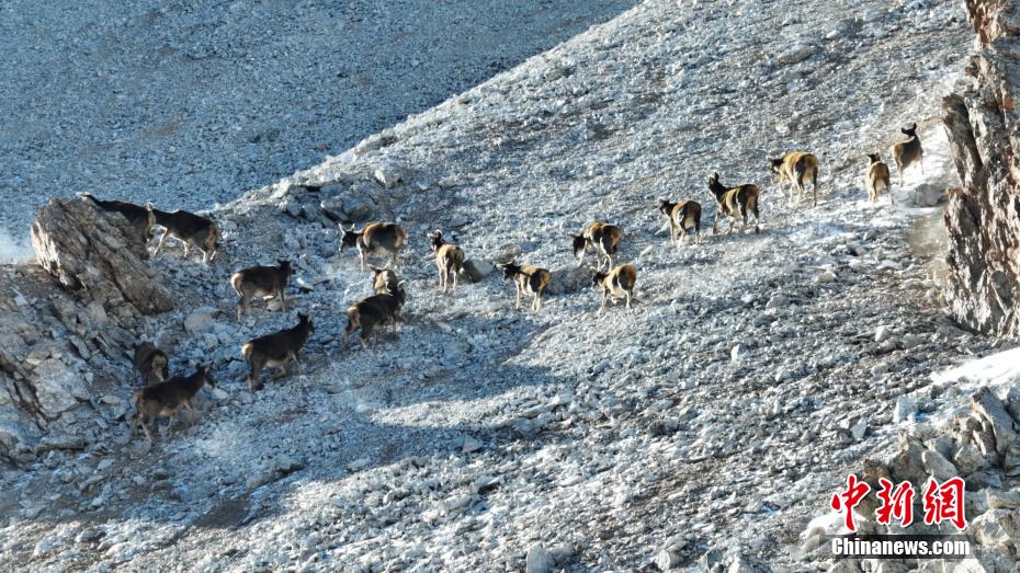 國家一級保護動物白唇鹿“成群結隊”奔跑在祁連山