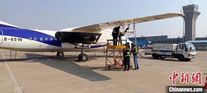圖為國(guó)家增雨飛機(jī)新舟60(B-651N)在洛陽(yáng)機(jī)場(chǎng)開展機(jī)載設(shè)備維護(hù)及任務(wù)系統(tǒng)升級(jí)工作。 甘肅省氣象局供圖