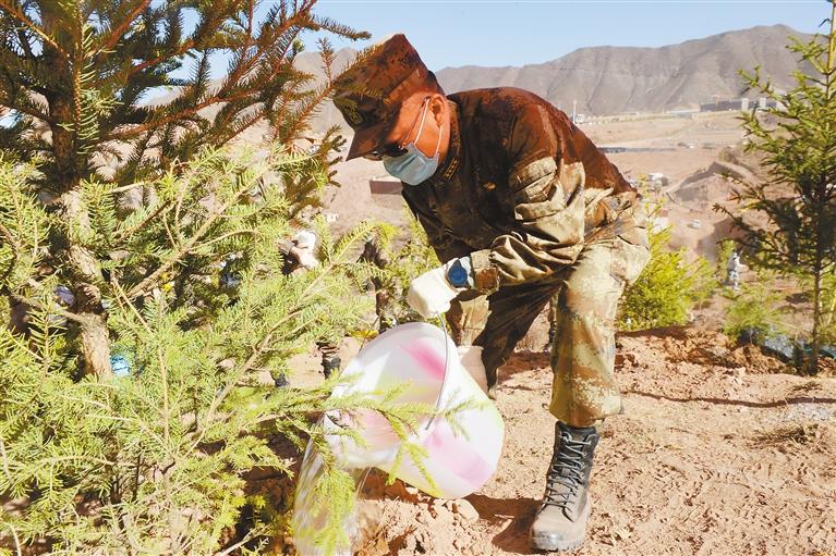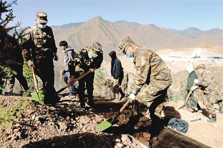 春意暖暖萬物蘇,又是一年植樹時(shí)。在第十個(gè)“世界森林日”來臨之際,西藏昌都軍分區(qū)130名官兵伴隨春日暖陽,前往昌都市卡若區(qū)孜通壩參加駐地全民義務(wù)植樹活動,用小樹苗為藏東高原再添新綠。