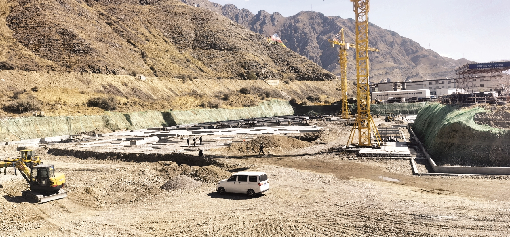 圖為堆龍德慶區(qū)民族團結主題公園一期施工現(xiàn)場,施工人員正進行地下車庫、游泳館等的基坑作業(yè)。 拉薩融媒記者 楊 璐攝