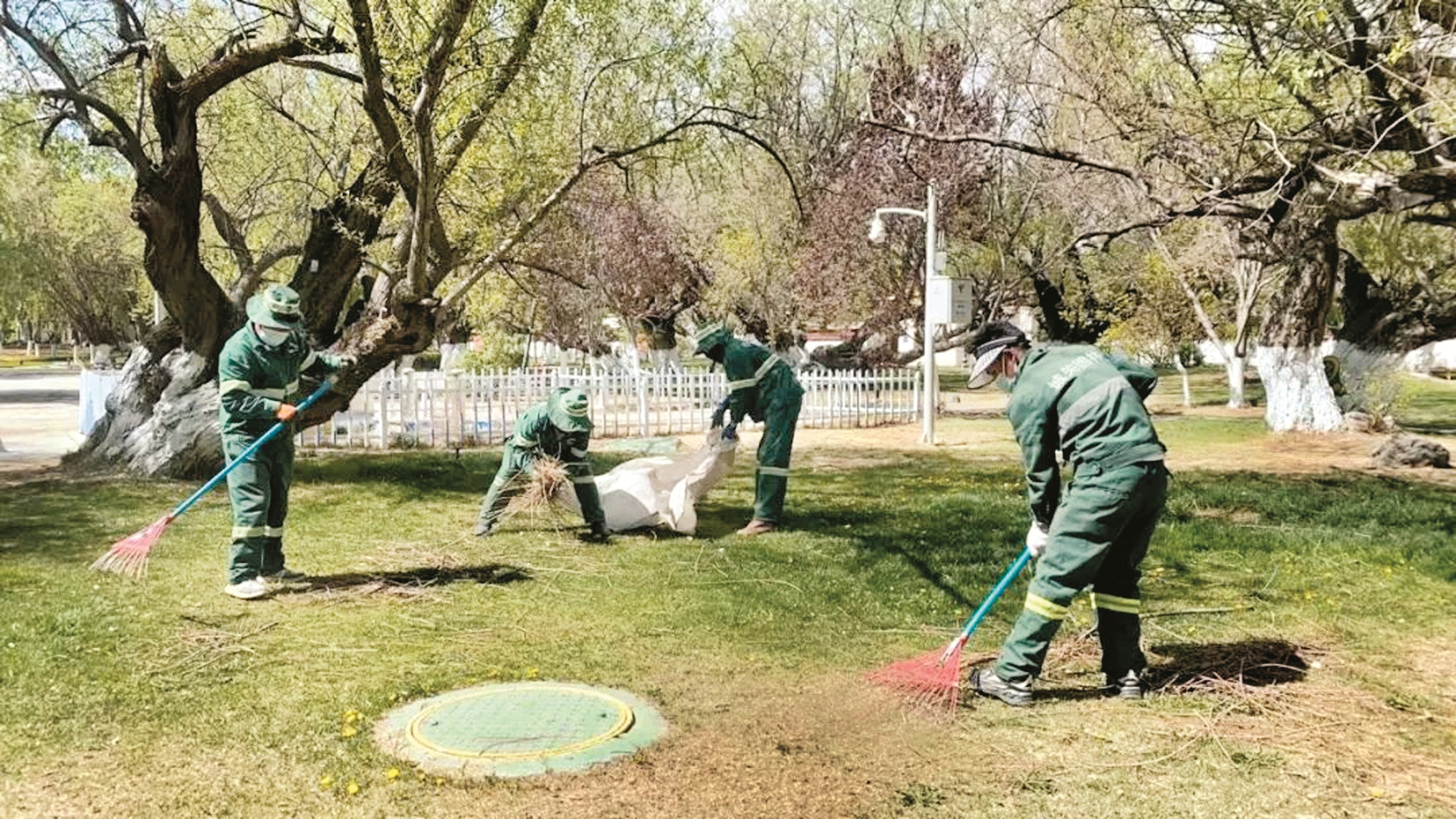 為加強(qiáng)公園綠化管理,做好公園環(huán)境衛(wèi)生保潔工作,提高羅布林卡公園綠化苗木成活率,確保綠化苗木順利返青,為廣大市民、游客提供干凈、整潔的游園環(huán)境,近日,拉薩市城關(guān)區(qū)潔達(dá)園林公司在羅布林卡公園內(nèi)安排園林工人12名、綠化澆灌車6輛,開展了清理死苗渣土、保潔、春灌等養(yǎng)護(hù)工作。