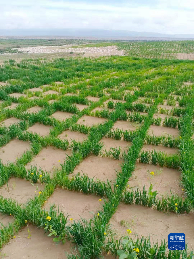 “2018年以來,我們積極開展治沙新材料試驗研究,利用小麥、青稞、燕麥、披堿草等生物材料開展活沙障設(shè)置試驗?,F(xiàn)在四種生物沙障當年成活率可達到95%,起到良好的固沙作用?!壁w雪彬說。