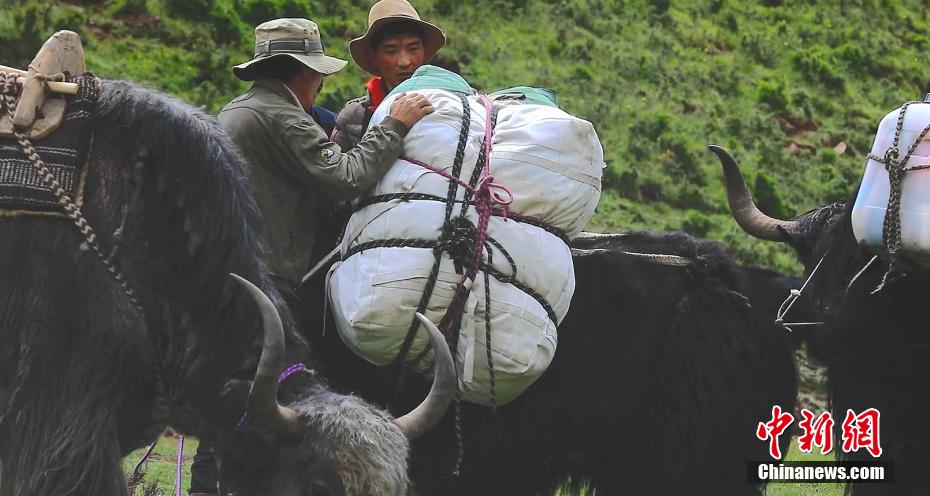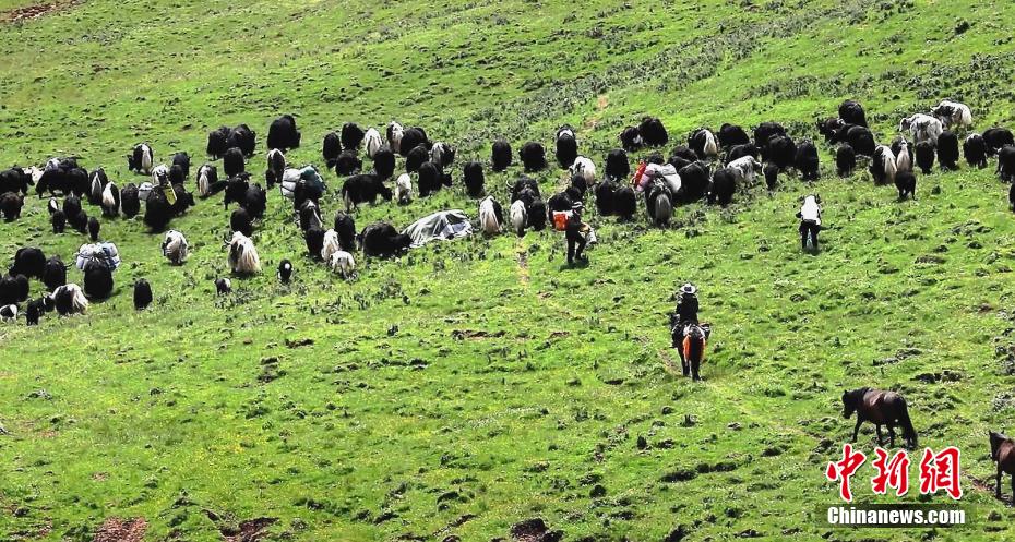 圖為牧民讓牦牛背上“行李”轉(zhuǎn)場。 仁青多杰 攝