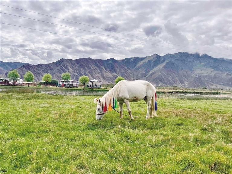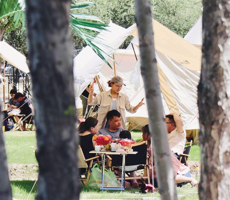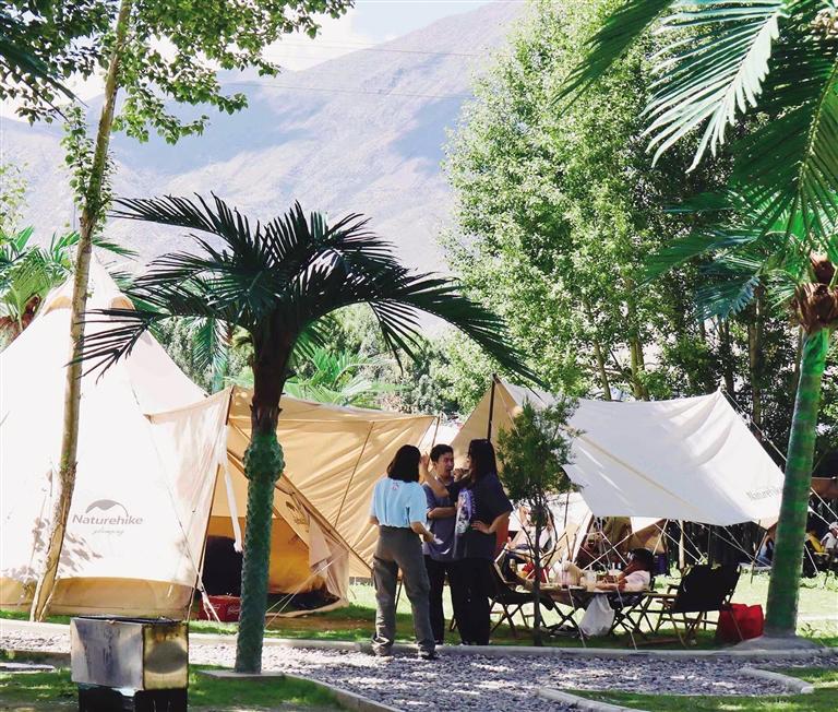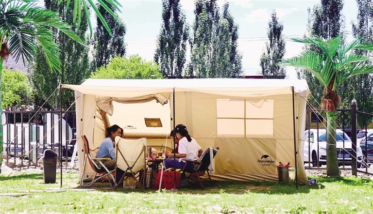在拉薩,還未踏進(jìn)林卡營地,便能聞到烤肉的香氣,尋著歡笑聲走去,你會(huì)發(fā)現(xiàn),這些林卡營地宛如“桃花源”呈現(xiàn)在眼前。不論是藏式林卡營地還是西式露營地,都有共同的“魔力”——把“煩惱”擋在門外。一頂頂白色的帳篷和天上的朵朵白云相呼應(yīng),綠色的草地是夏天才有的限定“地毯”,抬頭,油綠而繁茂的樹葉在微風(fēng)中婆娑,似乎在回應(yīng)著樹下人群的歡笑。讓人不禁感嘆,原來,大自然才是治愈內(nèi)心最好的良藥。