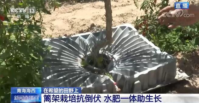 在栽培種植方面,由于枸杞樹苗比較脆弱,為了保證存活率,需要在溫室里培育一定時間才能適應(yīng)這里的氣候,之后才會移植到室外,進行籬架栽培。而這樣的種植方式主要是為了抗倒伏,這里風(fēng)沙天氣較為頻繁,如果沒有籬架的支持保護,枸杞樹很容易會栽倒,結(jié)下的果子與地表接觸一段時間后基本就會糜爛,產(chǎn)量就無法保證。大家可以再看一下枸杞樹的底部,有一個黑色的水管,工人會在水里加入水溶肥,既能澆水又能施肥,達到水肥一體。底下灰色的托板有兩個好處,一個是精準灌溉,因為在高海拔地區(qū)氣候比較干燥、降水比較少,板上的凹槽能夠?qū)⒂晁吐端紖R聚到枸杞樹;第二個是可以遮擋陽光,能夠抑制雜草的生長。