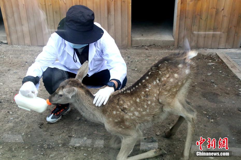 圖為“奶爸”給馬鹿喂奶。 張?zhí)砀?攝