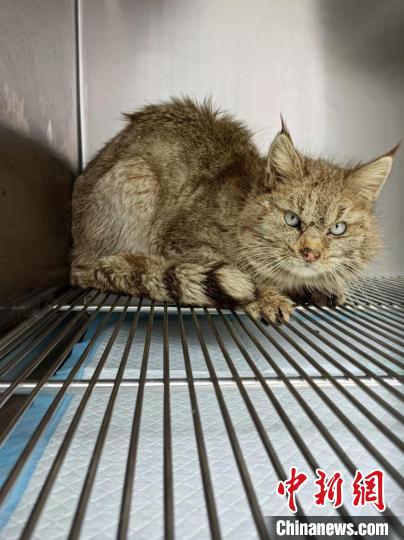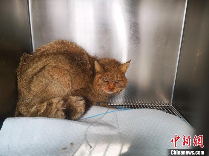 圖為被救護(hù)的荒漠貓“黃老太”。 青海野生動物救護(hù)繁育中心供圖