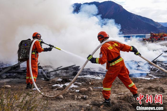 圖為林芝市2022年處置森林火災(zāi)應(yīng)急演練現(xiàn)場(chǎng)?!钣例垺z