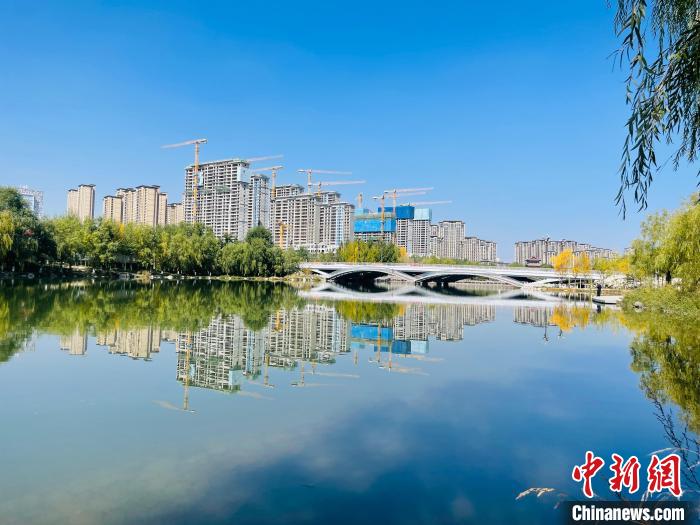 圖為西寧市北川濕地公園河水碧波蕩漾?!O?!z