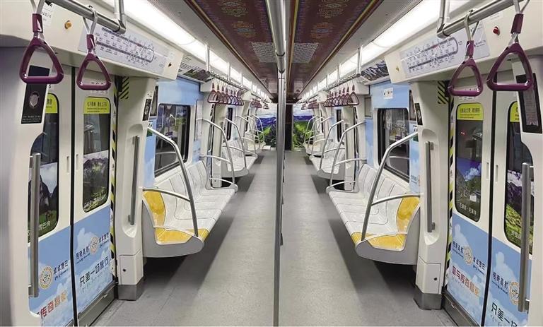 記者看到,在天津地鐵五、六號(hào)線文化中心換乘站點(diǎn)和地鐵一號(hào)線下瓦房換乘站點(diǎn),“昌都元素”已實(shí)現(xiàn)全覆蓋?!敖虿孛褡鍒F(tuán)結(jié)號(hào)”主題列車經(jīng)過精心打造,充滿濃濃“西藏味”,通俗易懂的宣傳語讀起來朗朗上口、充滿視覺沖擊力的照片震撼人心。地鐵站臺(tái)層承重柱、地鐵屏蔽門、車廂內(nèi)門窗、車壁、頂部這些醒目位置,都布置了圖文并茂、通俗易懂的宣傳海報(bào)和標(biāo)語。