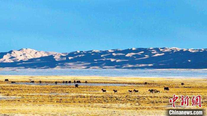 和煦的春風為沉默一冬的高原帶來蓬勃生機,野牦牛、藏羚羊、藏野驢等珍稀野生動物在一望無際的高原上覓食?!“柦鹕絿壹壸匀槐Wo區(qū)管理局提供