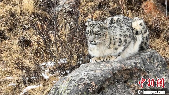 年保玉則景區(qū)管理局工作人員用無人機(jī)拍攝到的雪豹?!∪A卡加 攝
