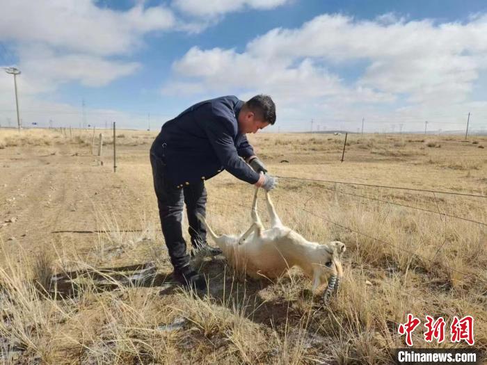 據(jù)介紹,3月12日11時(shí)許,青藏集團(tuán)公司西寧電務(wù)段哈爾蓋信號(hào)車間哈爾蓋信號(hào)工區(qū)的3名職工在徒步前往管內(nèi)那仁中繼站檢修信號(hào)設(shè)備途中發(fā)現(xiàn),有動(dòng)物掛在網(wǎng)圍欄,無法掙脫。