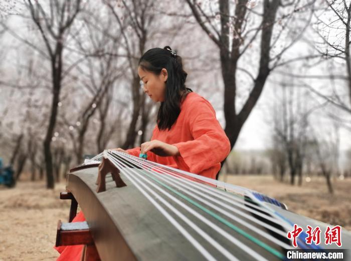 來自青海西寧的古力在杏花林撫琴,“我特意來到這邊,在杏花林彈古箏,畫面很美?;ㄩg彈琴本身是一種享受,希望也能感染踏青賞花的游客?!?/p>