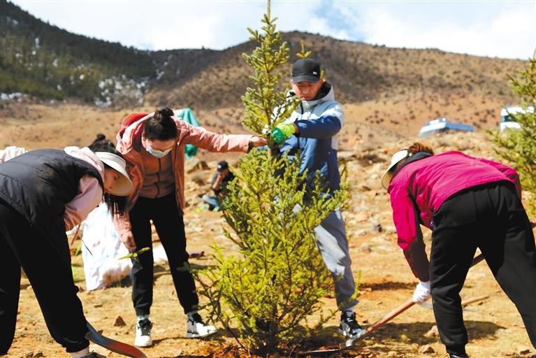 圖為4月7日,西藏左貢縣植樹(shù)活動(dòng)現(xiàn)場(chǎng)?!埡?攝