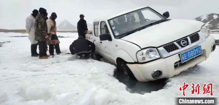 圖為巡護車輛陷車?!≈x昆軍供圖