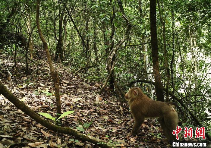 圖為紅外線相機(jī)拍攝的北豚尾猴影像 保山市龍陵小黑山省級自然保護(hù)區(qū)管護(hù)局供圖
