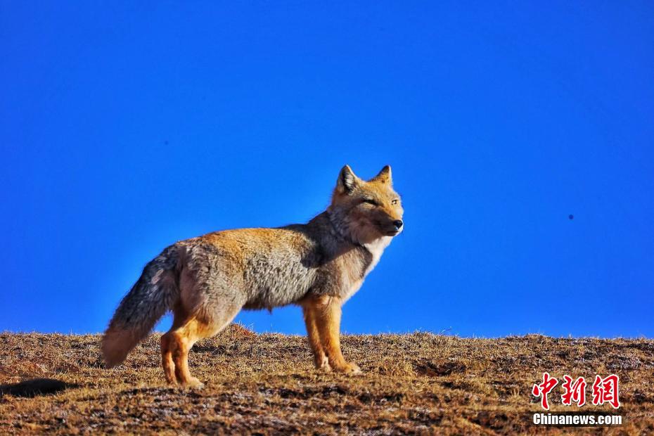 青海雜多三只藏狐曬太陽 表情神似復(fù)制粘貼