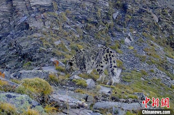 紅外線相機(jī)拍到的國家一級(jí)保護(hù)動(dòng)物雪豹活動(dòng)影像。 新龍縣林業(yè)和草原局供圖