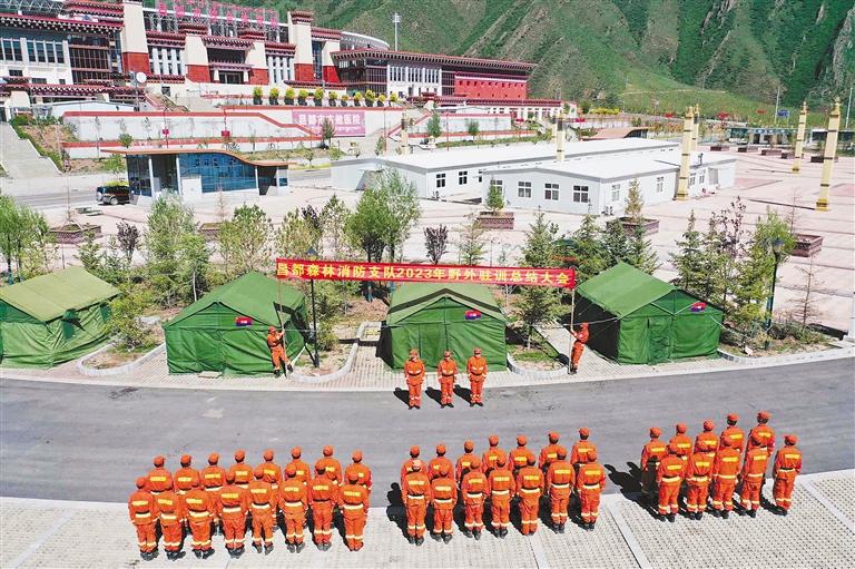 夏日的陽光溫暖宜人,透過稀薄的云層將大地映照得一片明亮……在昌都市森林消防支隊(duì)野外駐訓(xùn)場,消防員配合默契地忙碌著,彼此間交流著簡短而高效的口令。有人把帳篷拆解成零件,有人裝卸救援裝備,有人檢查車輛安全性能……