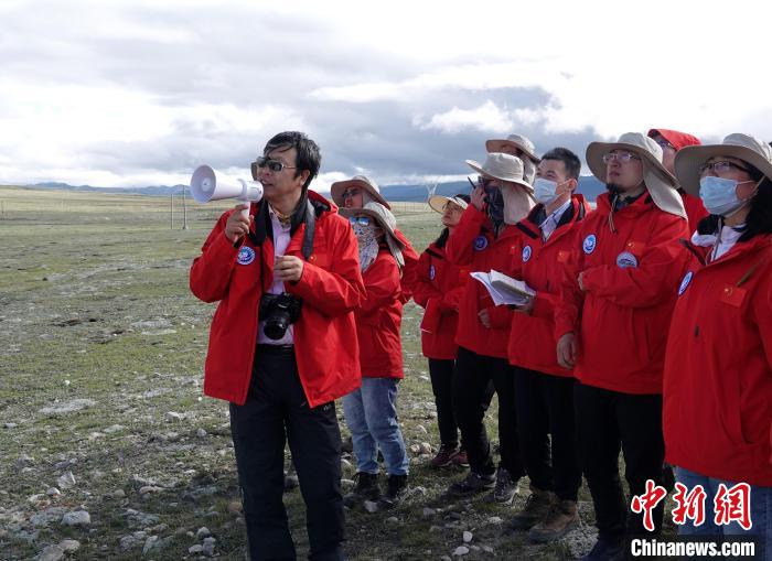 資料圖:2022年7月30日,陳發(fā)虎院士(左一)在青藏高原科考途中,為青年科考隊員們開設“高原課堂”授課?!≈行戮W(wǎng)記者 孫自法 攝