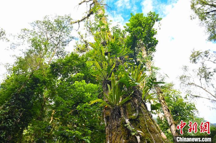 因氣候濕潤(rùn),森林里的樹上長(zhǎng)滿了藤蔓植物、蕨類植物、苔蘚。在這里,植物從空間上獲得了最大密度的生長(zhǎng)。開滿粉色花朵的植物從樹上倒掛而下,科考人員一眼辨認(rèn)出是大花水東哥,奈何正是花期無法采集種子。