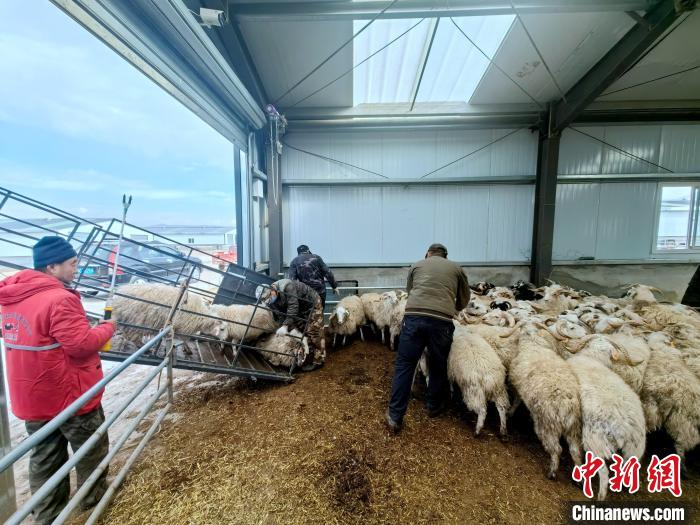 資料圖為青海省海北州海晏縣千牛萬羊基地的藏羊出欄。李雋 攝