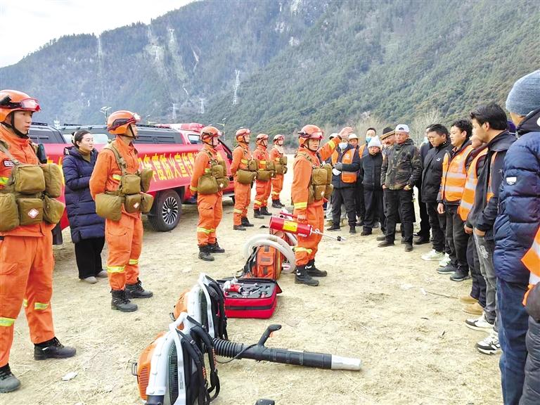 消防隊(duì)員對(duì)參訓(xùn)人員講解撲救森林火災(zāi)注意事項(xiàng)等方面內(nèi)容。圖片均由通訊員 尼瑪卓瑪 攝