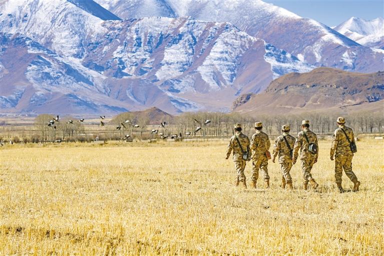 “生態(tài)就是資源,生態(tài)就是戰(zhàn)斗力!”林周縣人武部有關(guān)負(fù)責(zé)人告訴筆者,為完好國家生態(tài)安全屏障,他們先后成立了黑頸鶴民兵巡護(hù)分隊、熱振寺國家森林公園民兵巡護(hù)分隊等具有“生態(tài)環(huán)境保護(hù)功能”的民兵巡護(hù)隊,既當(dāng)守衛(wèi)國土的后援部隊,也當(dāng)青藏高原的生態(tài)衛(wèi)士。