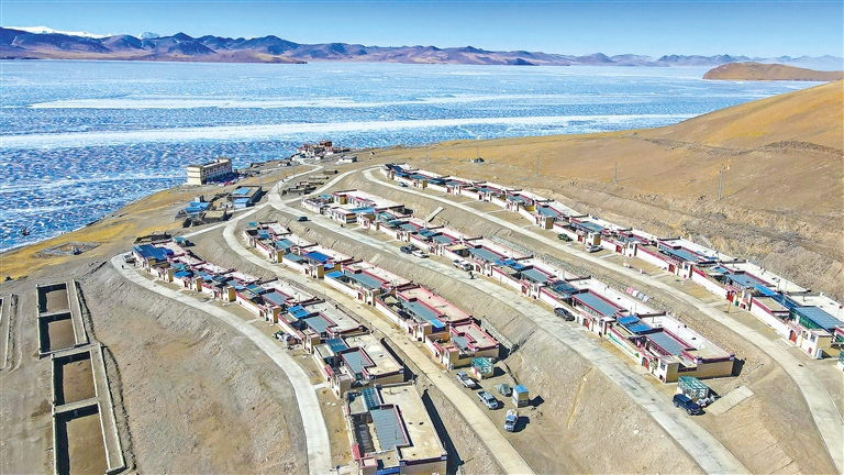 普莫雍錯岸邊的推瓦村。記者 劉楓 武沛濤 攝