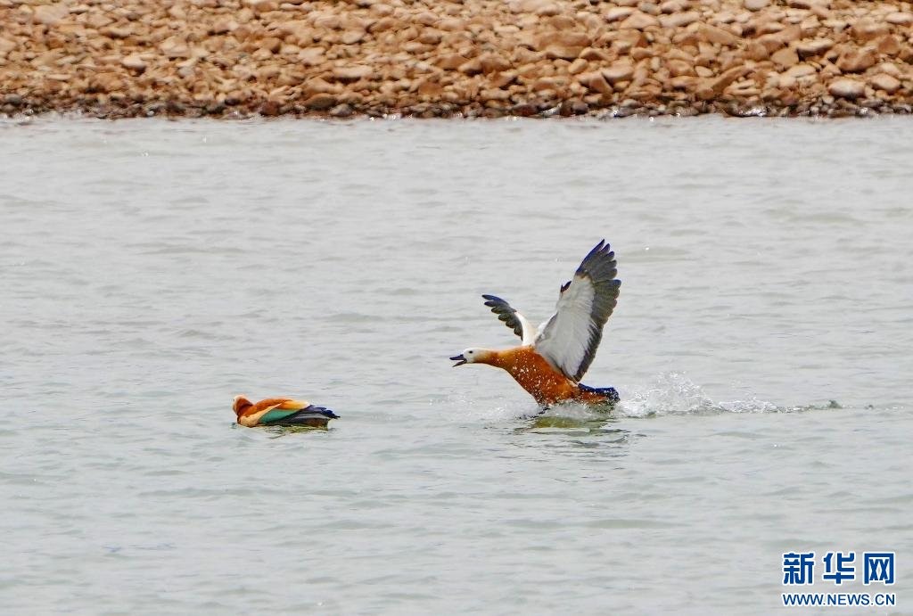 虎頭山水庫(kù)里的赤麻鴨(4月24日攝)。新華社記者 張汝鋒 攝